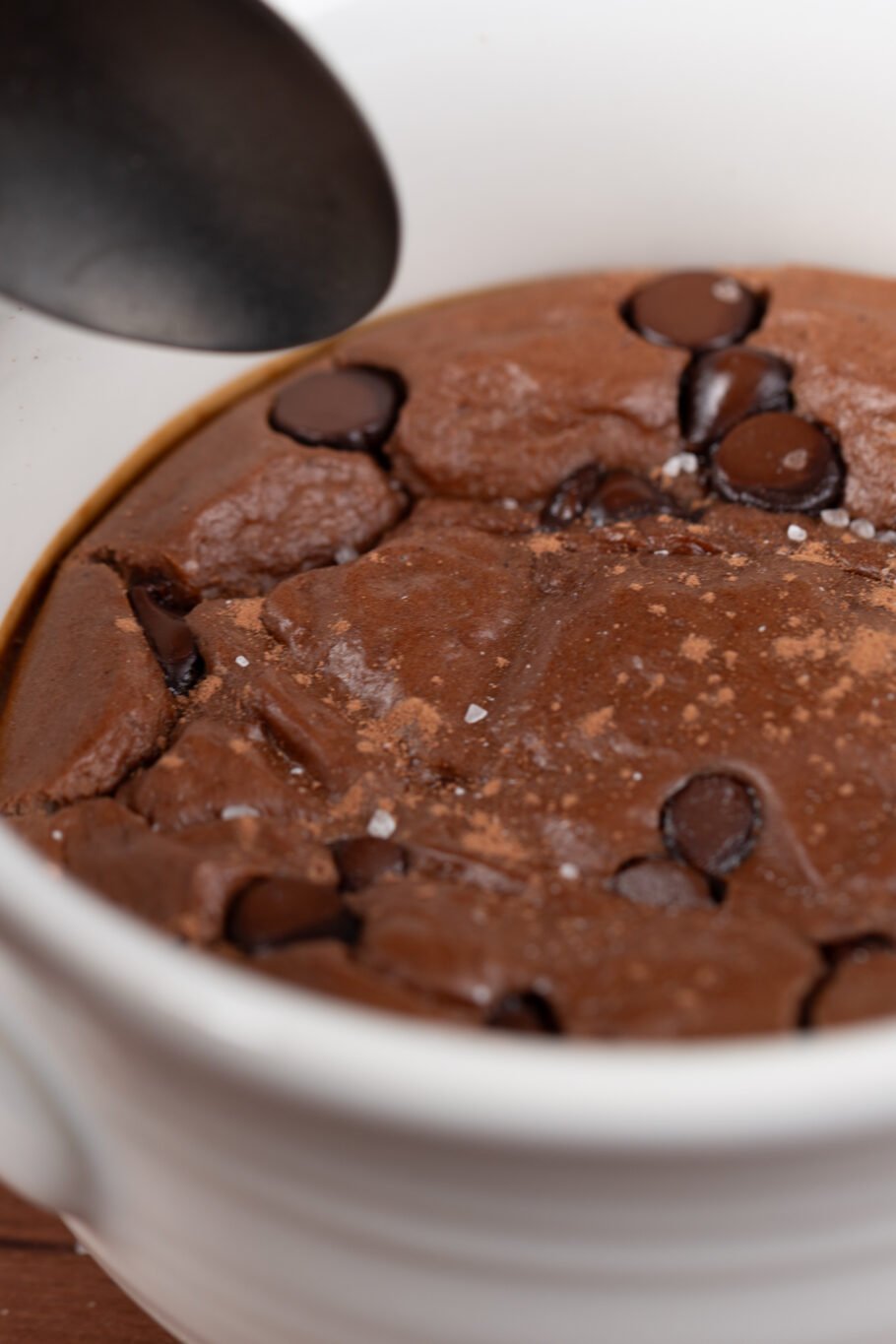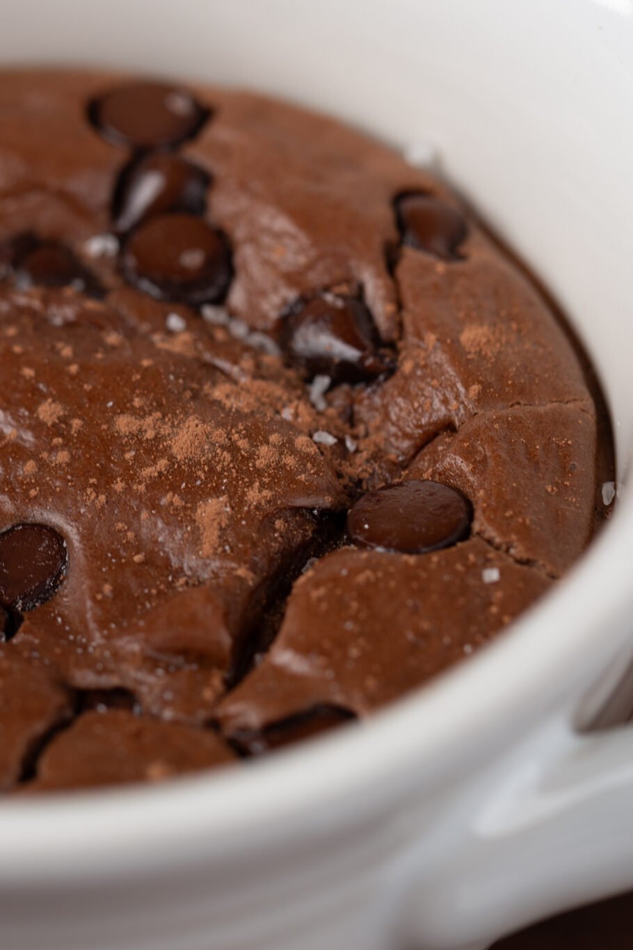 Last, top it with whatever you want for some additional texture. I went with a couple sugar free chocolate chips. Some of my other favorite chocolate protein baked oatmeal toppings?