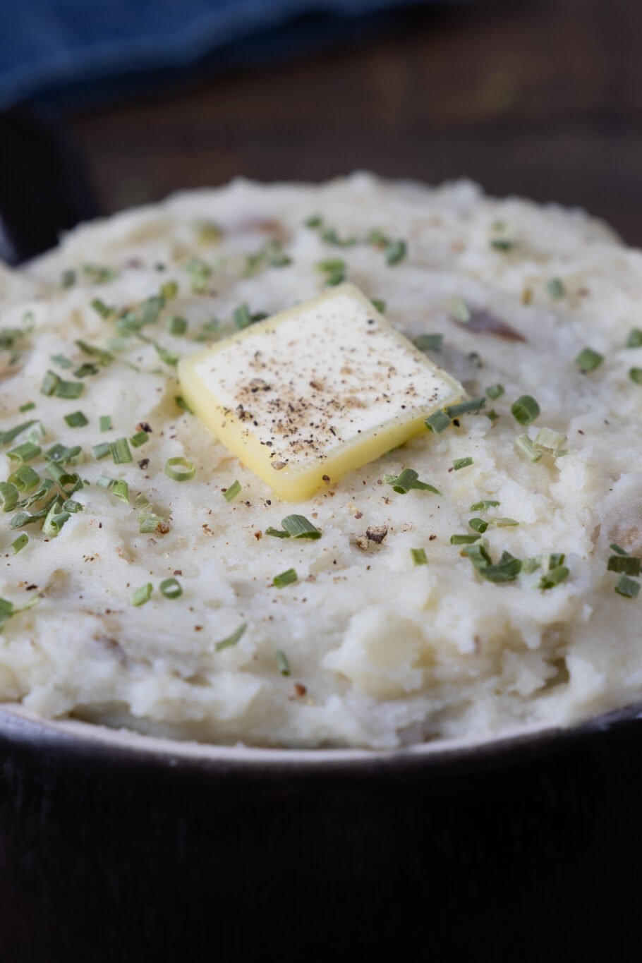 Another thing you’ll need to do is to choose to keep the skin on or remove it. Personally, I’ll either leave it on or go 50/50. I like the texture of the skin plus it gives you some extra fiber and nutrients. This makes me curious, do you guys leave your potato skin on or off? Drop it in the comments!