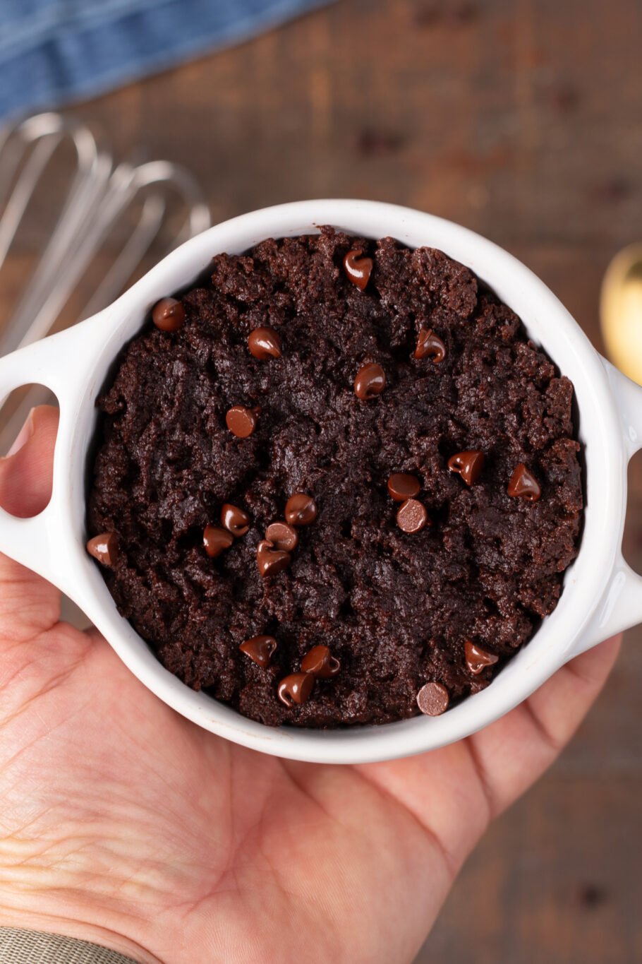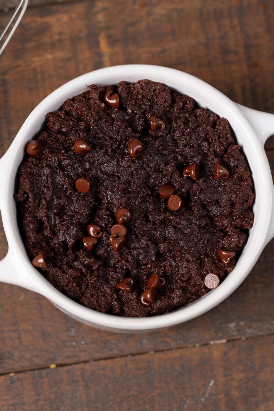 While it’s microwaving make sure to keep an eye on it the first time you make it so you don’t microwave it for too long which will give you a dry brownie.