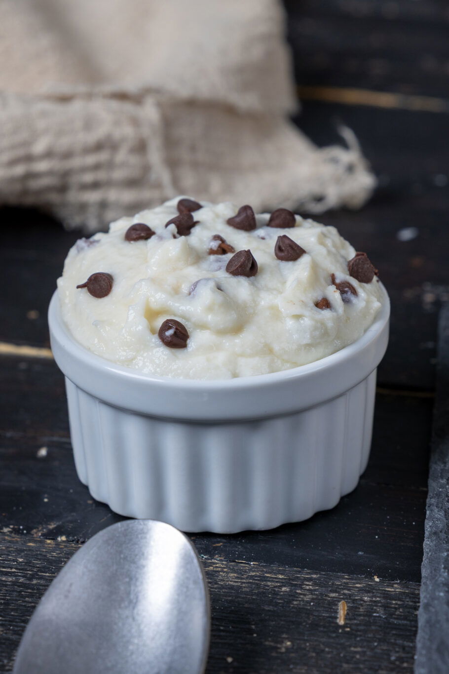 Process or blend those together until smooth. If your Greek yogurt and/or ricotta cheese has too much liquid in them you may need to add in 1/2 teaspoon of xanthan gum to give it a thicker, more cannoli like texture.