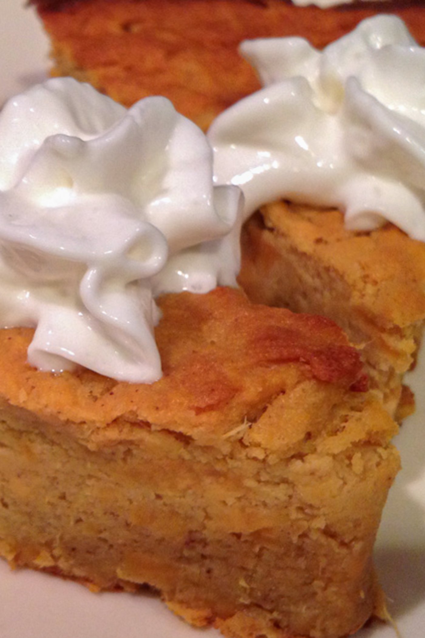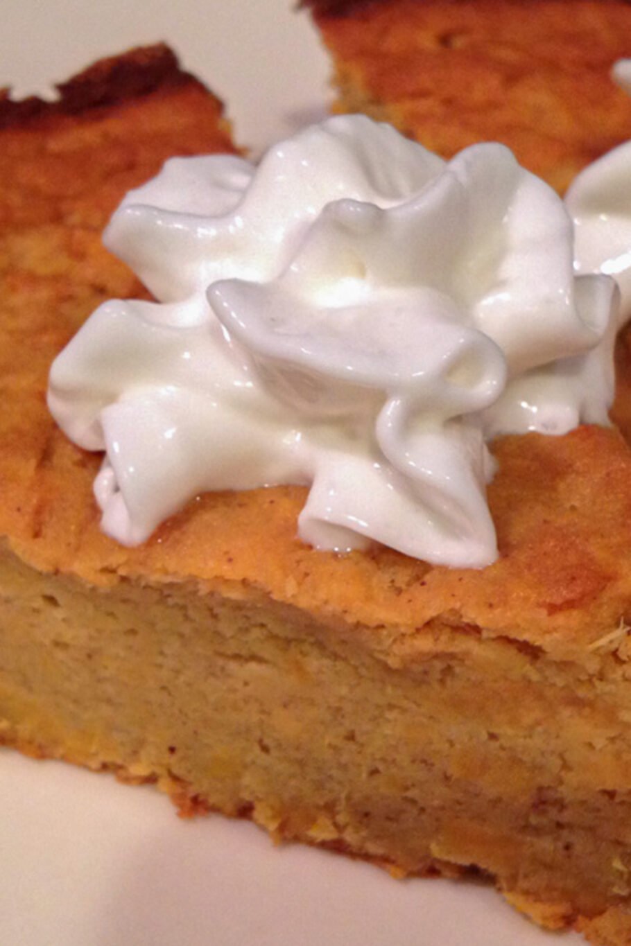 Remove it from the oven, let it cool, and optionally top it. I topped mine with some fat free whipped cream and ground cinnamon! Let us know what you top your healthy protein sweet potato pie with in the comments below.