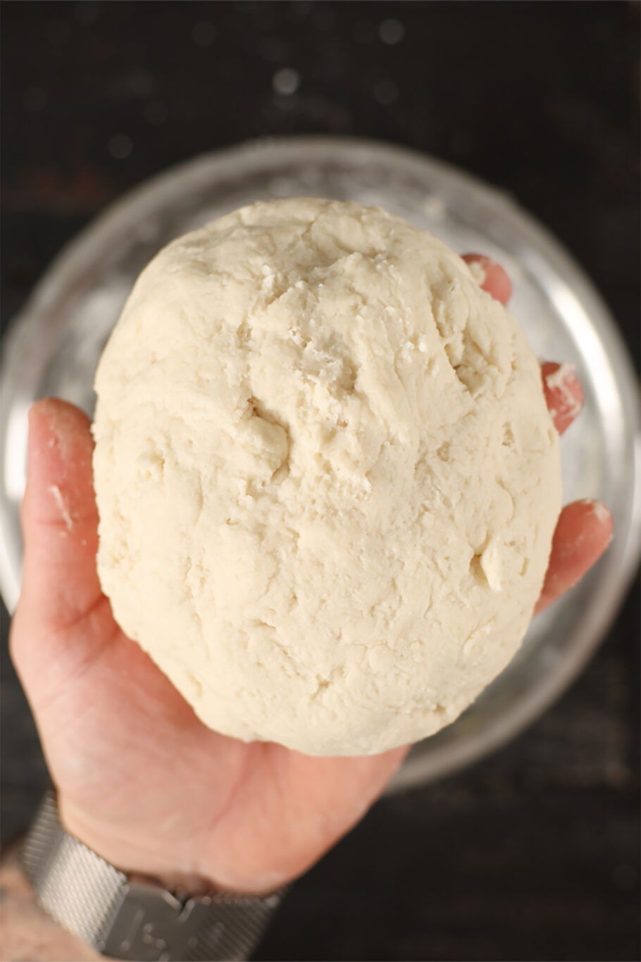 - If it appears to be too dry/cracking, add 1-2 tablespoons more of Greek yogurt at a time and if it's too wet/sticky, add 1-2 tablespoons more of flour at a time