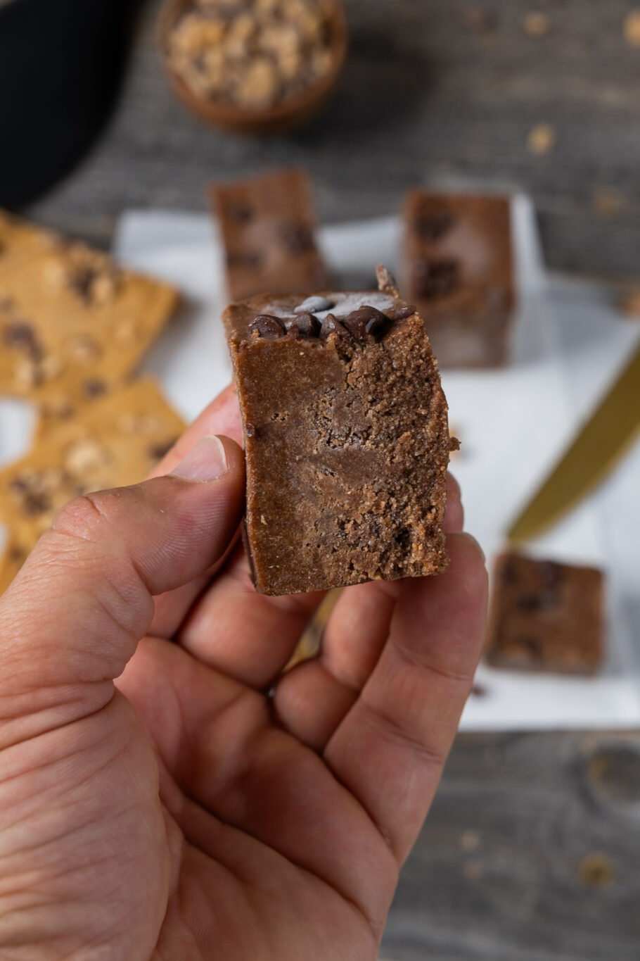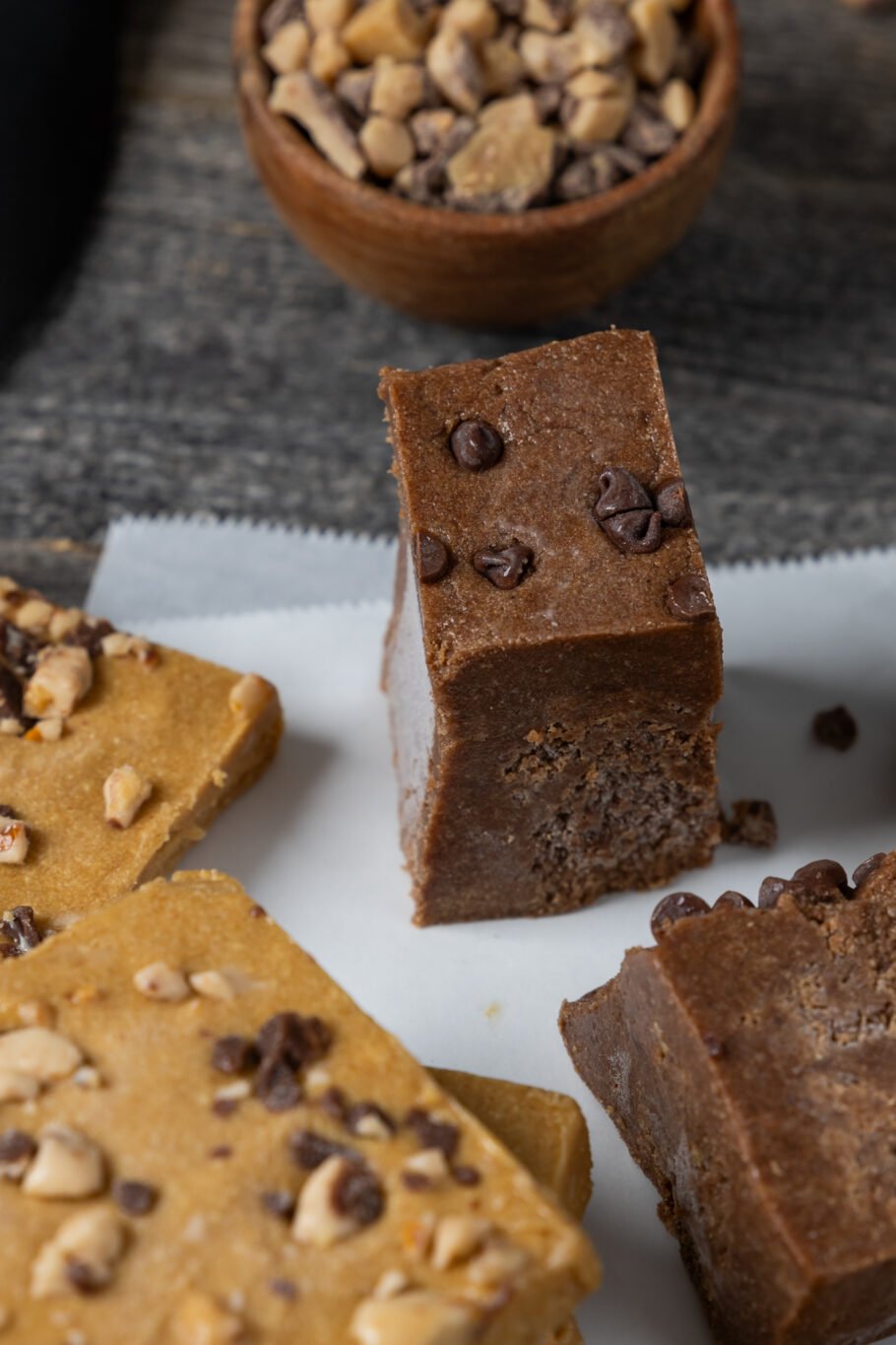 As for storing this protein peanut butter fudge? Keep it in the freezer where it should last over a month, if not longer!