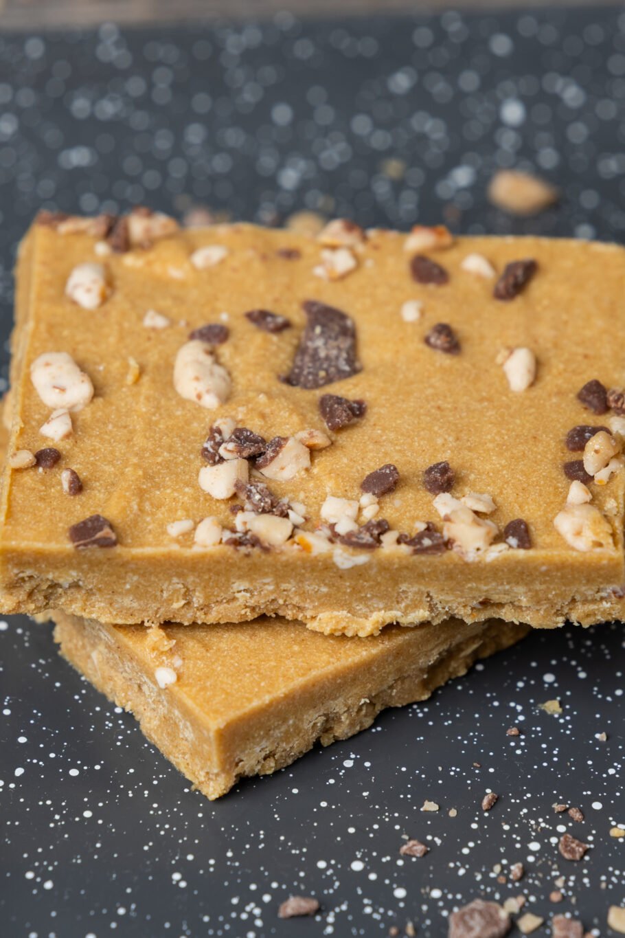 Put your soon to be protein peanut butter fudge into the freezer for a couple hours to settle.