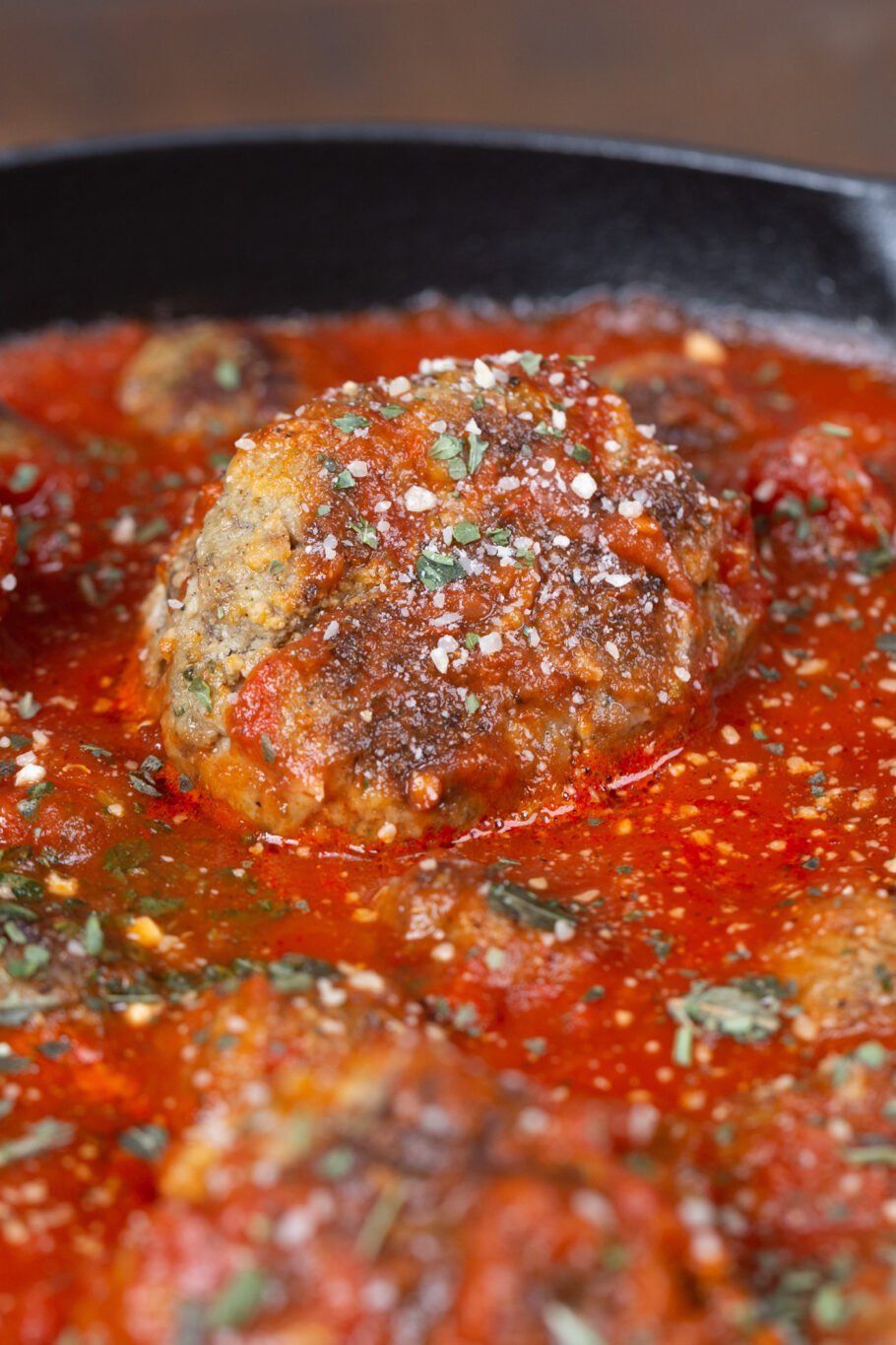 Very good! I used two pounds of ground turkey with ground up croutons. I ended up with a ton of meatballs, so it took me a lot longer to brown than I was expecting. I used 2 jars of Rao’s marinara instead of one. I served with some Banza Angel hair pasta and a salad. My 4 kids gobbled this up. Will definitely be making it again! Thanks for the recipe!