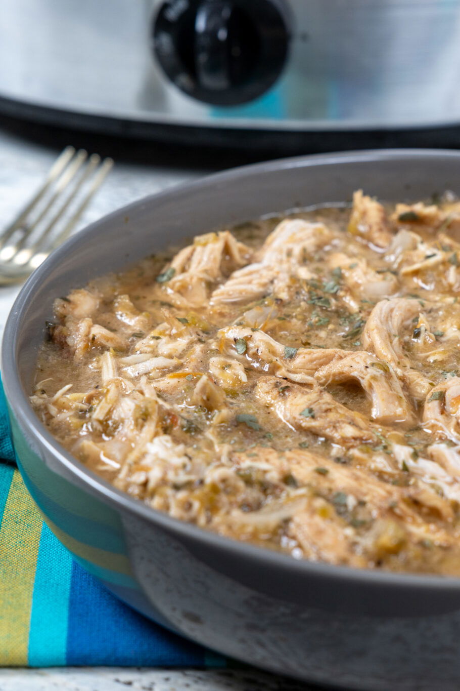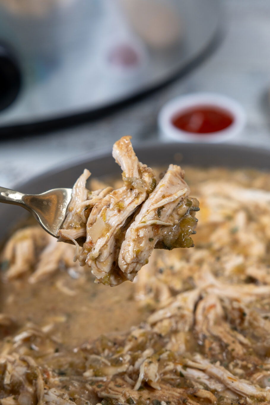 Once that’s done, use 2 forks to shred your chicken by pulling it apart. It should shred without much effort using this method but to make it even easier, you can remove your chicken first. I’ll almost always shred it right in the slow cooker, it takes maybe a few minutes max once you get the hang of it.