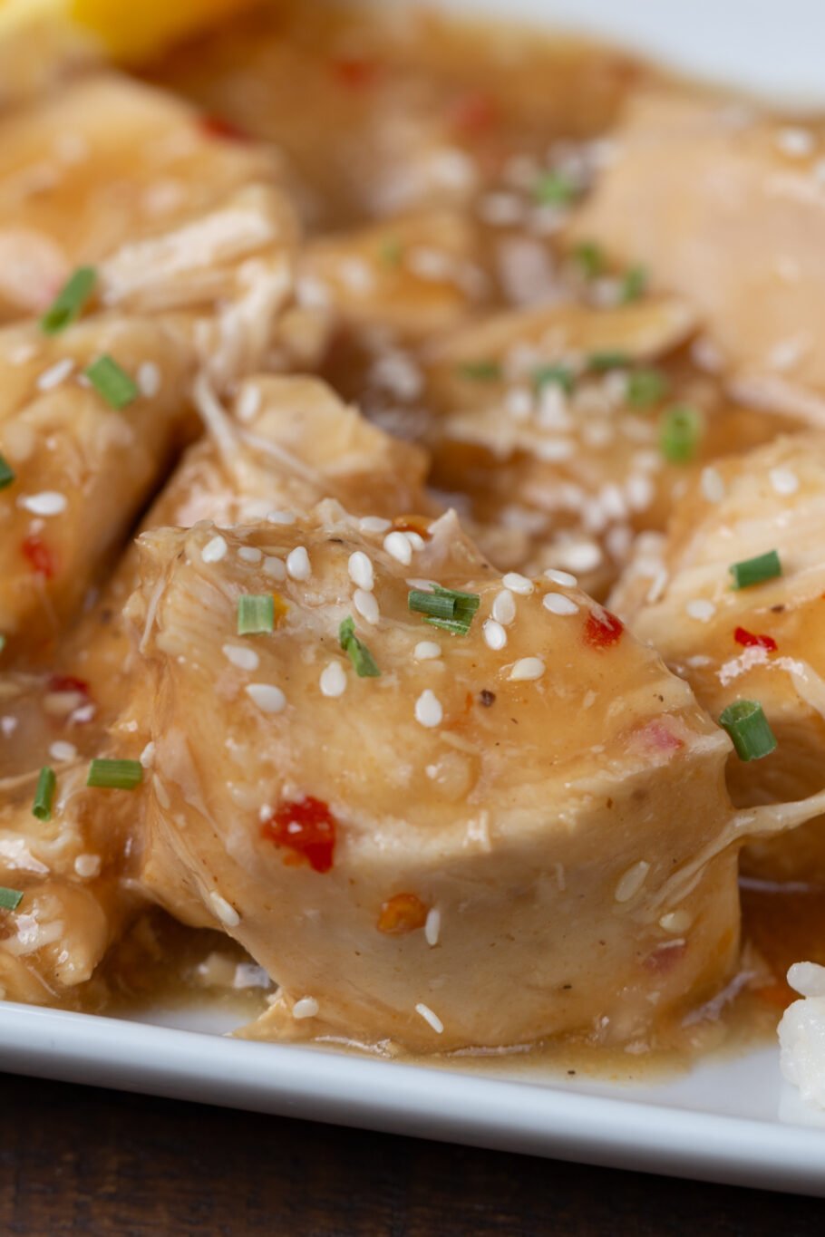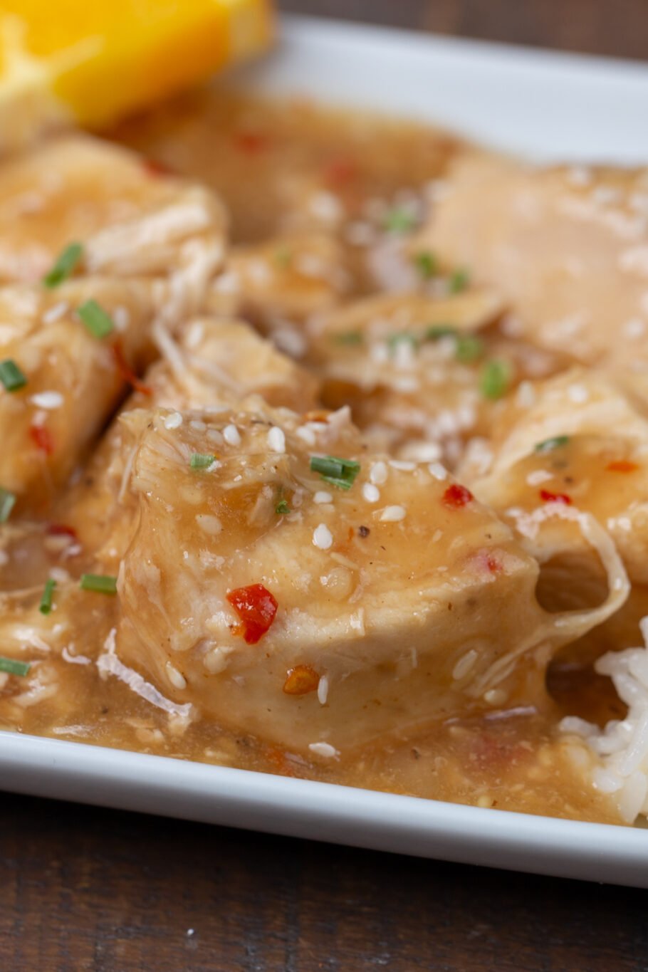 Add this slow cooker orange chicken recipe onto some rice, pair it with broccoli, top it with green onion and more sesame seeds, and/or anything else you want.
