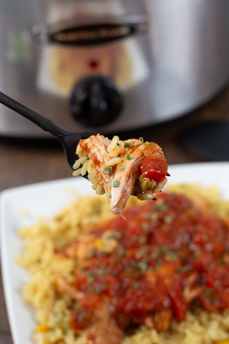Last, put your lid on and let it cook on low heat for around 4-5 hours or high heat for 2-3 hours. You’ll know it’s done when your chicken reaches 165F/73C internally.