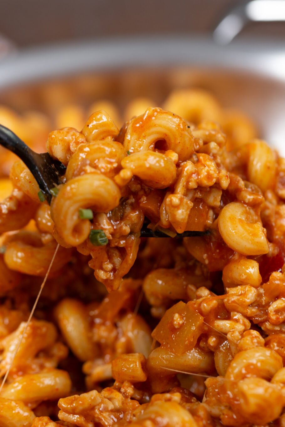 Continue by mixing everything together and letting your taco pasta cook on low heat for a couple minutes.