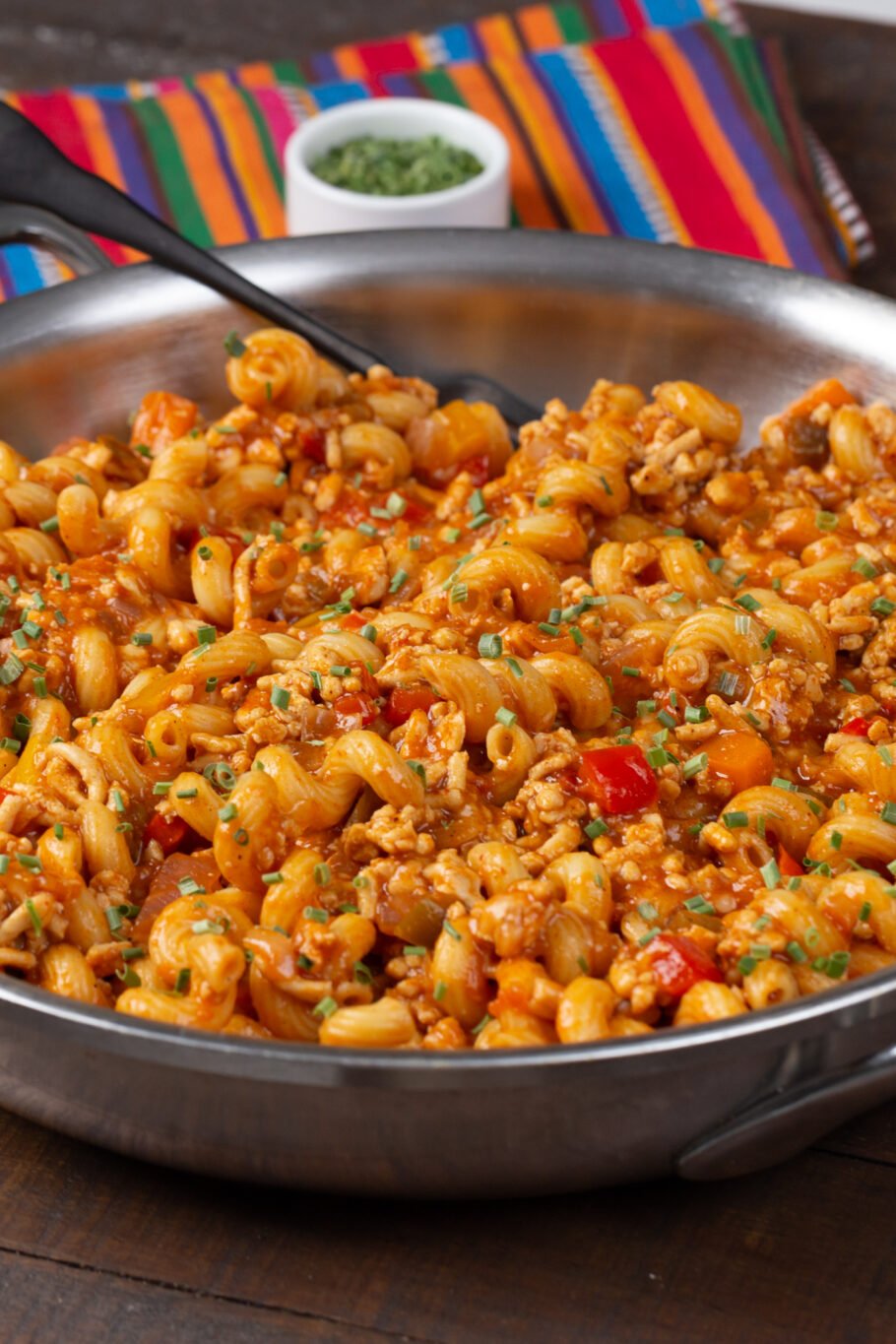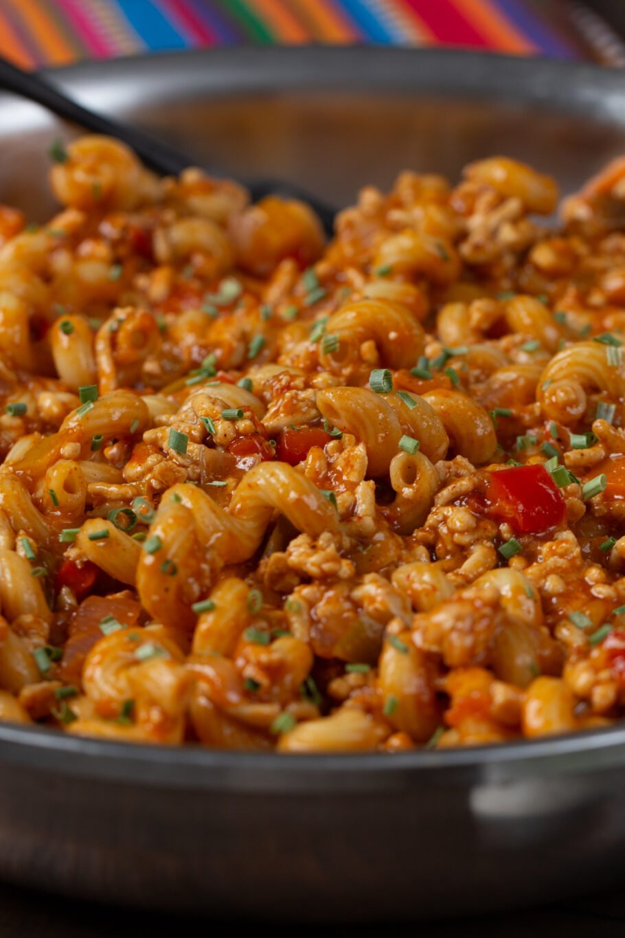 Pro tip? You can change up the heat and flavor of this taco pasta by using various salsas.
