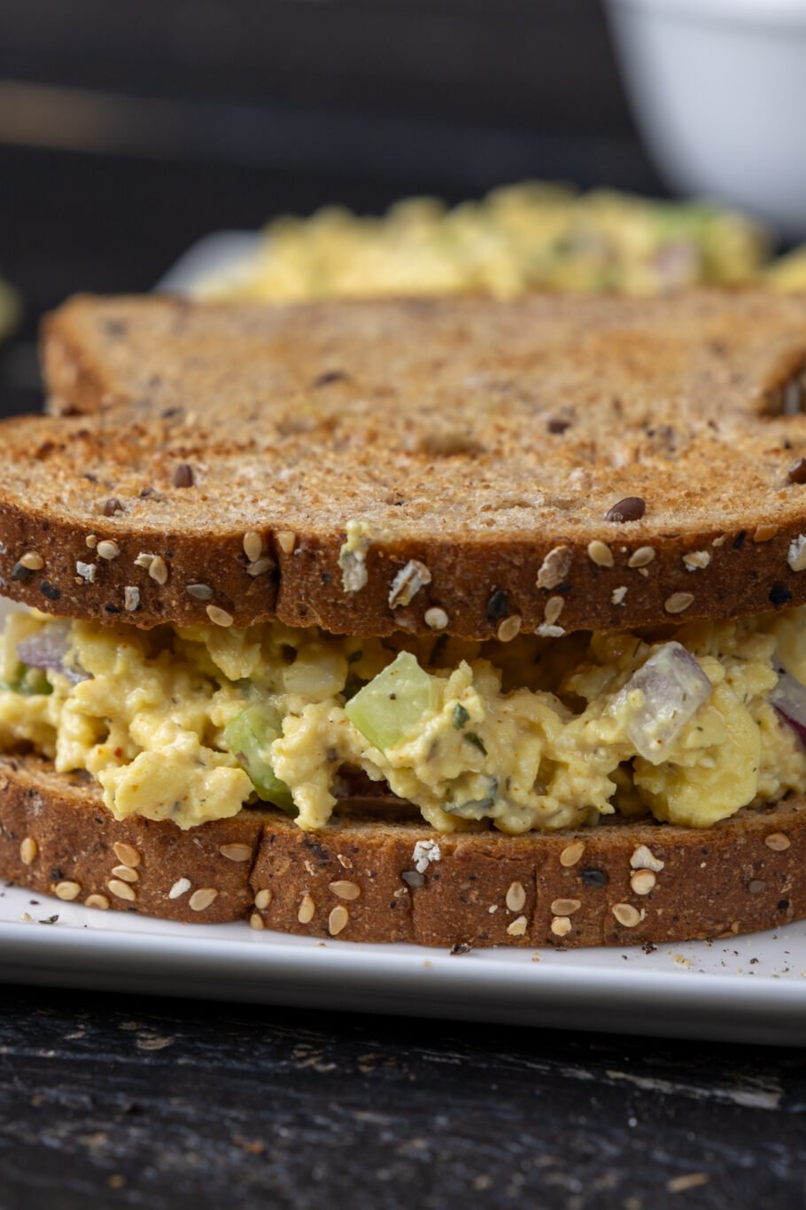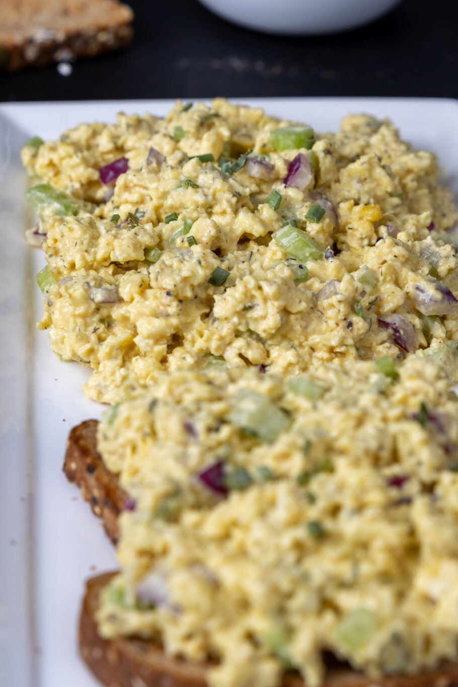 Give everything a light mix and choose how you’re going to eat the best scrambled egg salad EVER! By itself, with cracks, on some lettuce, or as a sandwich filling.