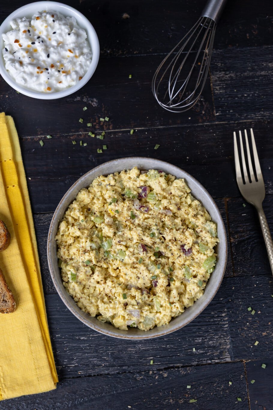 We’re back in the mix with a new high protein breakfast recipe that’s as easy to make as the original, The Best Scrambled Egg Salad EVER! Made using cottage cheese, this is just as quick if not quicker, and has equally as much protein…if not more.